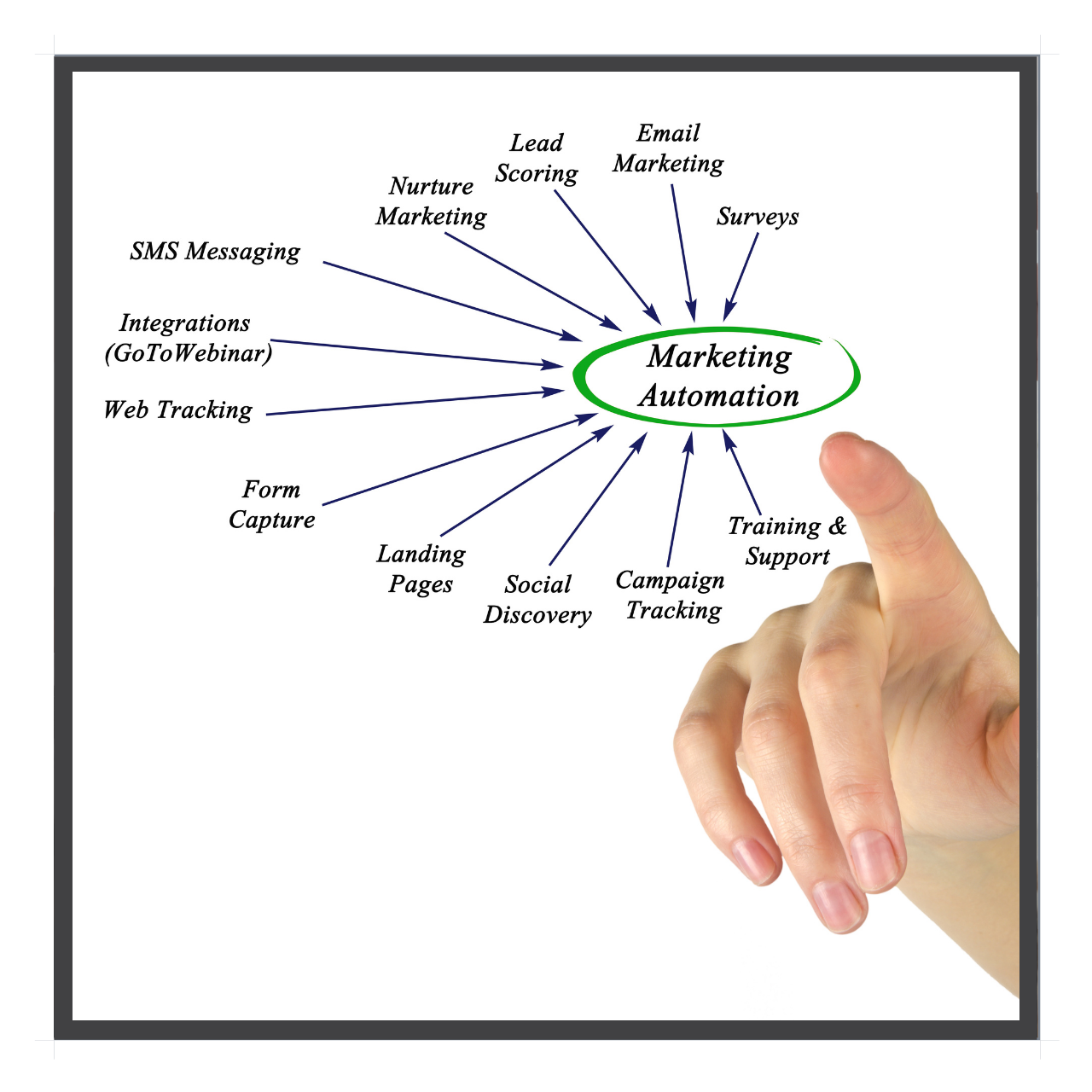 - Integration of all software, so that they are all talking to each other and automation is ready for you to start sending traffic through your automated marketing machine.